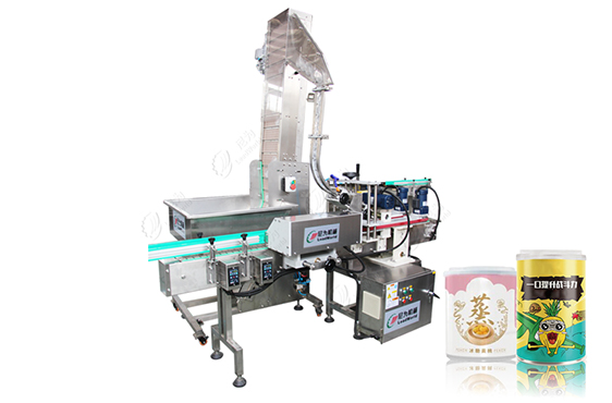 自動上蓋壓蓋機,采用直線式進瓶、自動落蓋、不間斷壓蓋等新工藝。在落蓋的設計中運用的提升式落蓋裝置,避免了振蕩落蓋的噪音,且使得產量也有很大的提高。
